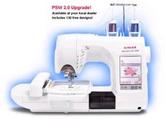 Sogar eigene Entwürfe am PC oder eingescannte Fotos lassen sich mit dem Singer PSW Designer 2.0 (Sonderzubehör) stickfertig umsetzen, auf dem Bildschirm in 3-D-Optik kontrollieren und auf Smart Media Cards abspeichern. Sie können Stickmotive mit bis zu 128 Farben sticken.